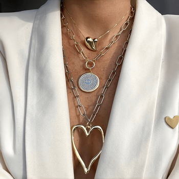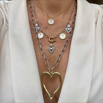 फैशन अतिशयोक्ति बड़ा खोखला दिल का आकर्षण पेंडेंट नेकलेस नेकलेस 18k गोल्ड प्लेटेड लिंक चेन चोकर गहने नेके लिए सेट
