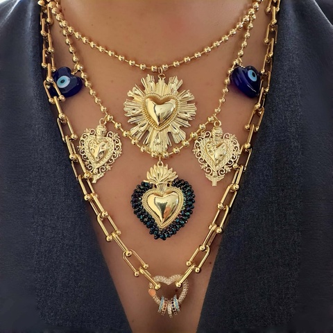 फैशन क्रिस्टीनिटी जेसस पवित्र दिल का खोखला हार 18k सोने की प्लेटेड लिंक चेन महिलाओं के लिए गहने हार का सेट