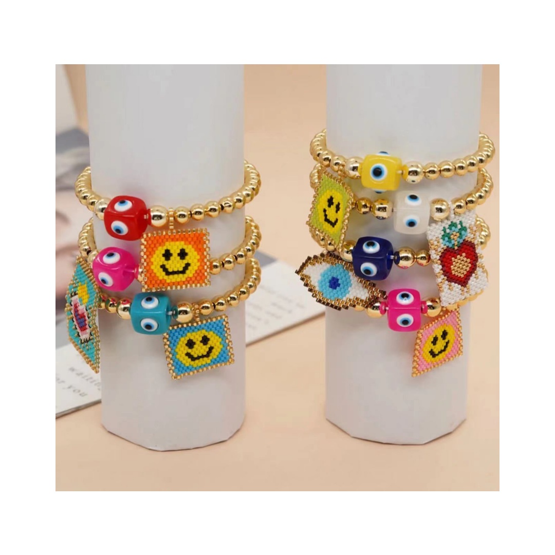 Ins lien populaire perles de cuivre et tissé 18k plaqué or bracelet ensemble perle d'eau douce avec miyuki bracelet à breloques femmes