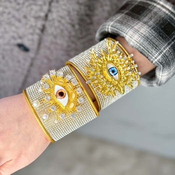 ファッション誇張巨大邪眼象嵌フルジルコンダイヤモンドチャームブレスレット18Kゴールドメッキ高級ジュエリーバングルセット女性用