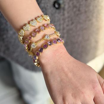 ファッションカラフルなフルジルコンダイヤモンドハート型チャームビーズブレスレット18kゴールドメッキ弾性ジュエリーブレスレットセット女性用